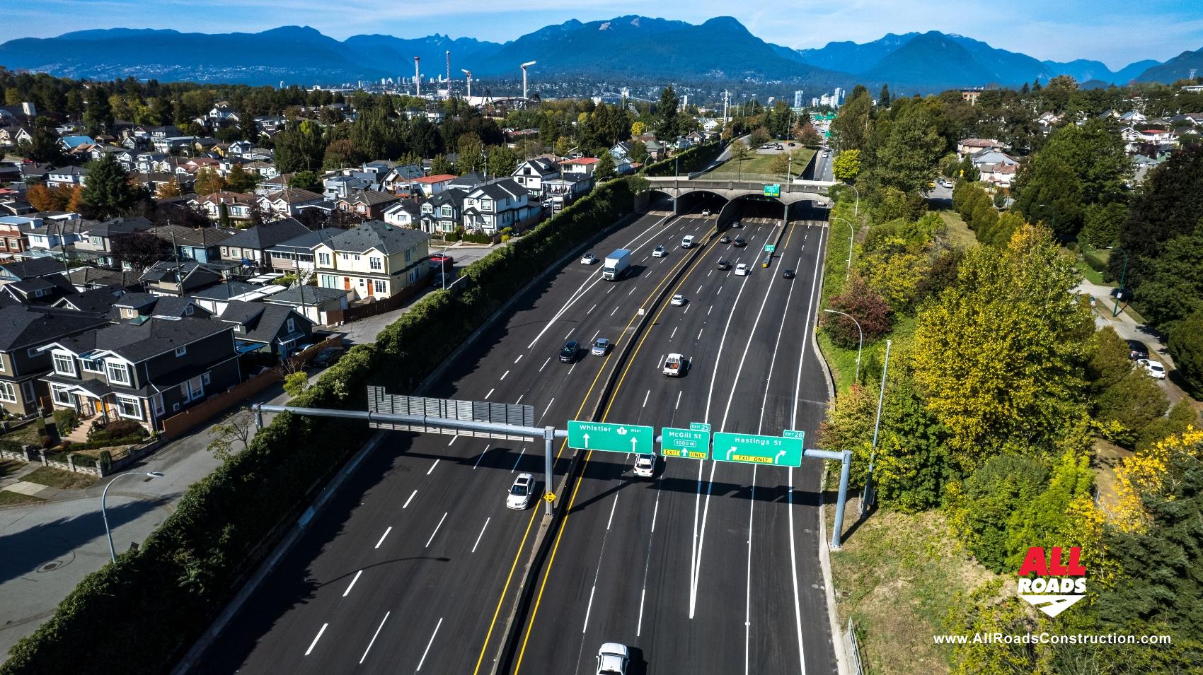 All Roads is proud to have been awarded the fifth phase of the Highway 1 paving project, covering 51.5 lane-kilometres from the Willingdon Interchange to the Cassiar Tunnels. This milestone marks the successful continuation of our work with the Ministry of Transportation and Transit, following the completion of the previous four phases.