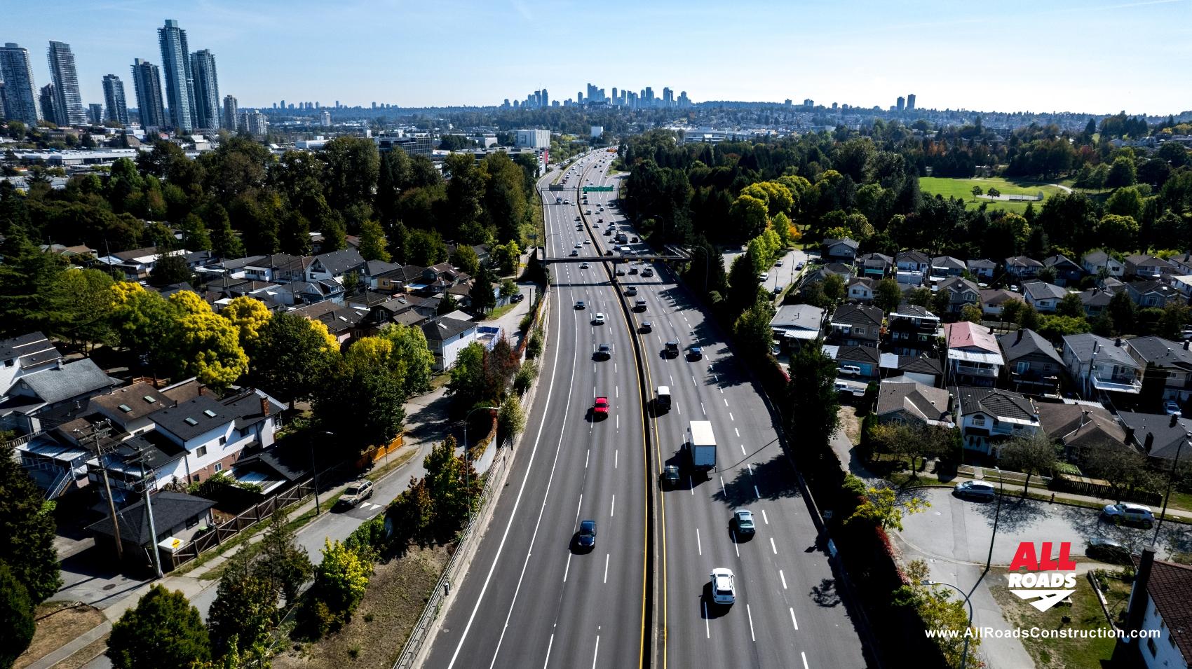 All Roads is proud to have been awarded the fifth phase of the Highway 1 paving project, covering 51.5 lane-kilometres from the Willingdon Interchange to the Cassiar Tunnels. This milestone marks the successful continuation of our work with the Ministry of Transportation and Transit, following the completion of the previous four phases.